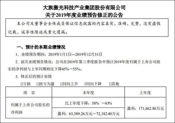 (觀察者網訊)1月8日晚間,大族激光發布一份業(ye) 績預告修正公告,引起了資本市場關(guan) 注。