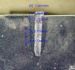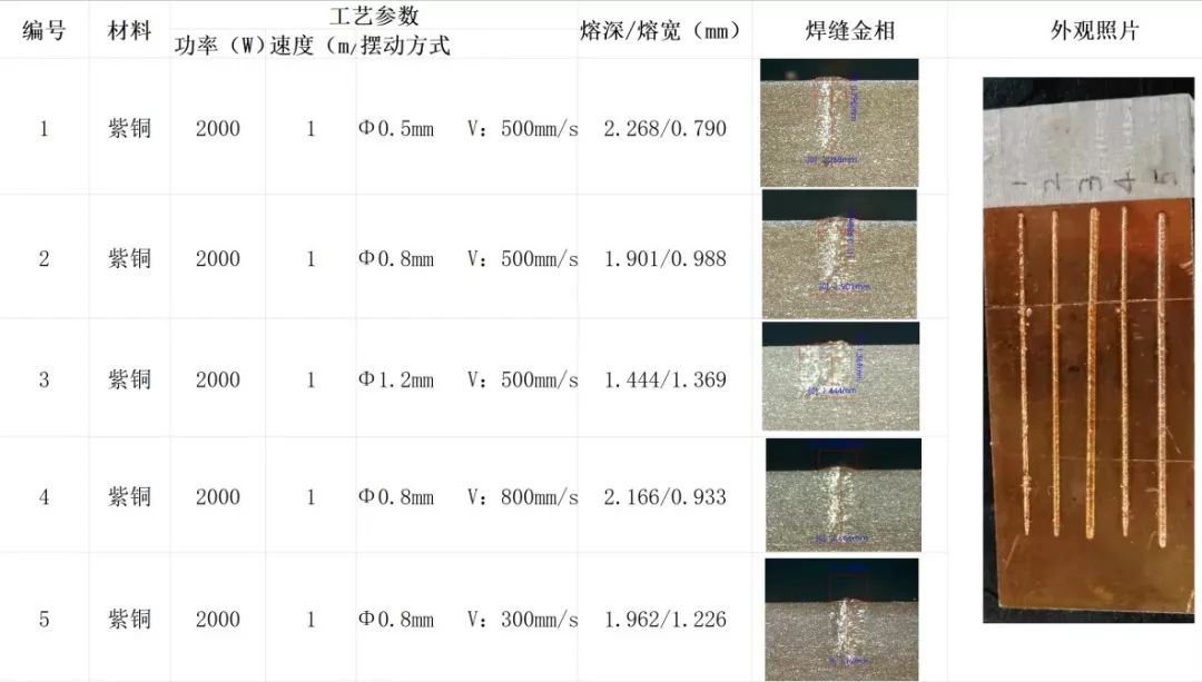 大科激光生產(chan) 的2kW單模激光器M2因子小於(yu) 1.2,可用於(yu) 連續焊接紫銅,焊縫深度可達2.3mm且無明顯缺陷,表3給出了大科2kW單模激光器焊接紫銅的結果,實驗表明大科單模激光器在焊接紫銅等高反材料時表現出了良好的適應性,為(wei) 紫銅激光焊接應用提供了有效的解決(jue) 方案。