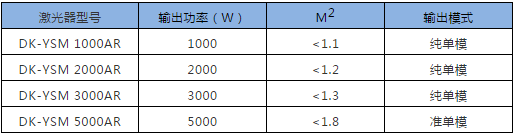 湖南大科激光有限公司已推出1000~3000W純單模光纖激光器產(chan) 品和5000W準單模產(chan) 品,其典型值如表1所示。
