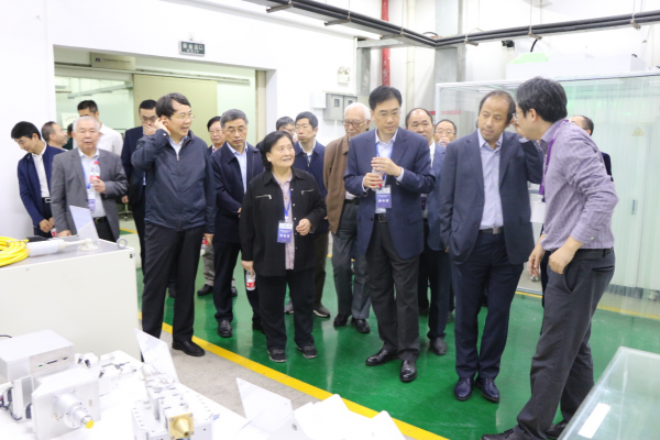 眾(zhong) 多院士和專(zhuan) 家參觀並聽取國誌激光首席科學家馬修泉教授講解國際首台5000瓦單光纖振蕩腔激光模塊、國內(nei) 首台3萬(wan) 瓦全光纖工業(ye) 激光器、萬(wan) 瓦級光閘、行星係深熔焊接頭等創新產(chan) 品(前排從(cong) 右向左為(wei) :楊華勇院士、邵新宇院士、鍾掘院士、黃慶學院士、丁漢院士、熊有倫(lun) 院士、郭萬(wan) 林院士)