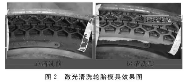 激光清洗技術在橡膠生產(chan) 行業(ye) 同樣有著不可替代的作用,輪胎模具由於(yu) 長時間的服役,表麵沉積了大量汙染物,對生產(chan) 精度產(chan) 生了巨大影響,利用激光技術可以對輪胎模具表麵(見圖2)進行“綠色”清洗。
