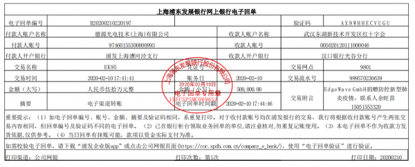 2月10日,為(wei) 幫助武漢抵禦疫情,世界著名超快激光器企業(ye) 德國EdgeWave GmbH委托上海子公司德源光電向武漢市東(dong) 湖高新開發區紅十會(hui) 捐款五十萬(wan) 人民幣。
