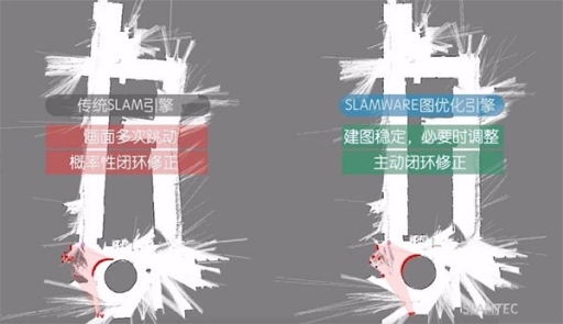 而在SLAM算法中,思嵐科技也推出了全新的SLAM3.0係統,即使在複雜的大場景中,機器人也能輕鬆完成定位導航任務。相對於(yu) 傳(chuan) 統SLAM,SLAM3.0係統采用了圖優(you) 化的方式進行構圖,能實現百萬(wan) 平米級別的地圖構建能力,同時擁有主動式閉合糾正能力,能很好的消除因長時間運行而導致的裏程累計誤差,成為(wei) 目前業(ye) 內(nei) 最受歡迎的定位導航方式。