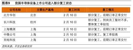 1.6 半導體(ti) :設備企業(ye) 均已部分複工,前期訂單正常交付
