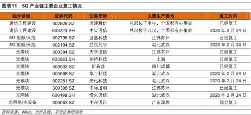從(cong) 供給端來看,主設備商供應鏈上的一些企業(ye) 產(chan) 能會(hui) 受到一些壓製,特別是湖北區域的企業(ye) 。但是從(cong) 庫存數據來看,這些企業(ye) 的現貨以及一些元器件儲(chu) 備較為(wei) 充足,產(chan) 能出現斷崖式下滑的可能不大。一旦複工,產(chan) 能就會(hui) 得到快速的修複。