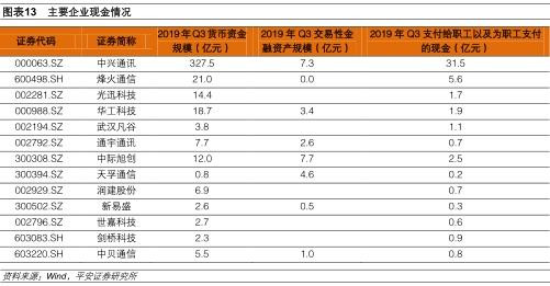 疫情短期擾動難阻5G進程,通信行業(ye) 供給短期可恢複:作為(wei) 5G建設的主力軍(jun) ,三大運營商近期分別召開了會(hui) 議,5G依然是全年工作的重點目標。突發因素對行業(ye) 景氣度的回暖隻會(hui) 產(chan) 生短期的擾動,並不會(hui) 改變行業(ye) 的整體(ti) 趨勢。產(chan) 業(ye) 鏈上主要企業(ye) 的庫存較為(wei) 充足,能夠滿足下遊客戶需求一段時間內(nei) 的需求。隻要複工有序推進,行業(ye) 供給的不足會(hui) 在短期內(nei) 得到消除。對比主要企業(ye) 的2019年Q3的貨幣資金規模、交易性金融資產(chan) 規模以及支付給職工以及為(wei) 職工支付的現金規模,我們(men) 認為(wei) ,這些企業(ye) 在短期停工的情況下,企業(ye) 的基本運轉不會(hui) 受到影響。整體(ti) 來看,疫情隻會(hui) 是一個(ge) 短期的擾動因素,並不會(hui) 阻礙網絡的部署進程。疫情結束後,整個(ge) 設備產(chan) 業(ye) 鏈有望迎來產(chan) 能的快速恢複以及運營商需求的快速回暖。建議關(guan) 注5G產(chan) 業(ye) 鏈和雲(yun) 計算產(chan) 業(ye) 鏈,關(guan) 注標的數據港、天孚通信、中際旭創、中興(xing) 通訊、新易盛、世嘉科技。