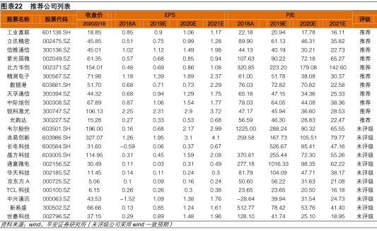 麵板行業(ye) ,我們(men) 認為(wei) 電視需求整體(ti) 穩定,大尺寸的供應受到疫情的影響不大。考慮到韓國產(chan) 能的退出及下遊備貨,我們(men) 預計TV麵板有望迎來10-20%的漲價(jia) ,有利於(yu) 改善目前麵板廠的盈利狀況。從(cong) 長周期的角度,本次韓國產(chan) 能退出是大陸麵板廠商話語權提升的拐點,大陸麵板廠受益最直接。建議關(guan) 注國內(nei) 電視麵板龍頭企業(ye) 京東(dong) 方A和TCL集團(華星光電上市主體(ti) )。