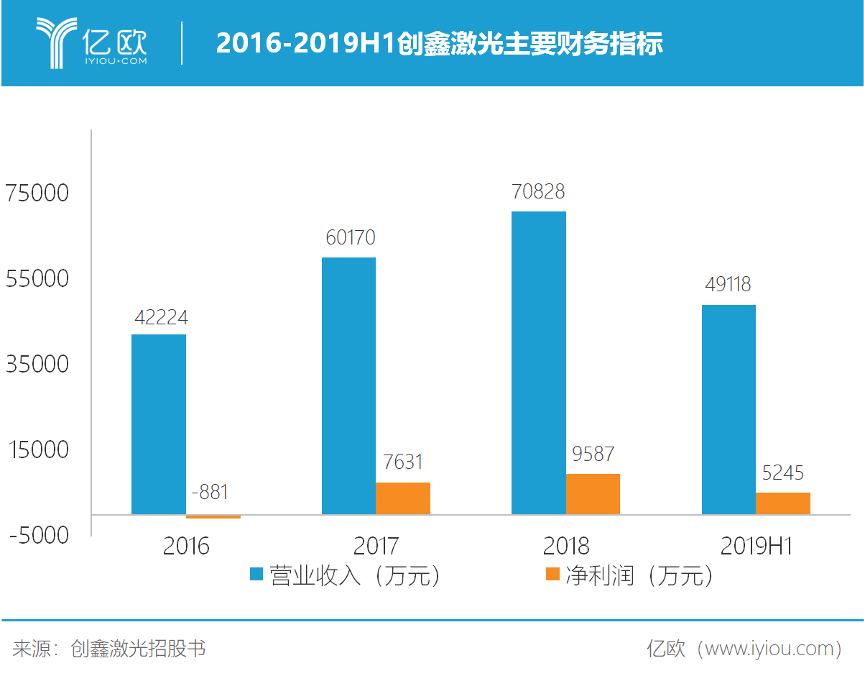 在核心零部件自產(chan) 的加持下,創鑫激光的營收高速增長,從(cong) 2016年的4.22億(yi) 元增長至2018年的7.08億(yi) 元,在光纖激光器國內(nei) 市場僅(jin) 次於(yu) IPG和銳科激光。