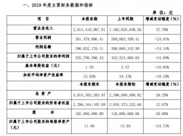 2月28日,銳科激光(300747)公布的2019年度業(ye) 績快報顯示,實現營業(ye) 收入 201,431.10萬(wan) 元,營業(ye) 利潤 38,147.98 萬(wan) 元,利潤總額 38,603.22 萬(wan) 元;歸屬於(yu) 上市公司股東(dong) 的淨利潤 32,579.06 萬(wan) 元,較上年同比下降24.68%。