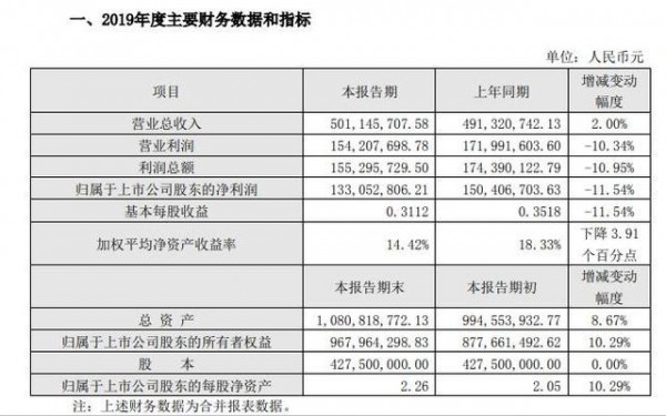 據了解,報告期內(nei) ,國內(nei) 外經濟形勢複雜,晶體(ti) 業(ye) 務市場需求放緩,晶體(ti) 元器件業(ye) 務收入小幅下滑,公司加強精密光學元件和激光器件的產(chan) 品和市場開發,取得積極的成效,彌補了晶體(ti) 元器件業(ye) 務收入的下降。2019年度,公司實現營業(ye) 收入50,114.57萬(wan) 元,比上年增長2.00%,實現歸屬於(yu) 上市公司股東(dong) 的淨利潤13,305.28萬(wan) 元,比上年下降11.54%;2019年末資產(chan) 負債(zhai) 率為(wei) 7.61%,比上年末下降2.30個(ge) 百分點,資產(chan) 結構未發生重大變化。