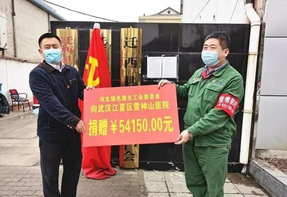 心係家國牢記使命,助力抗疫再獻愛心。3月1日上午,河北瑞兆激光再製造技術股份有限公司在向遷西縣疫情防控指揮部捐款200萬(wan) 元之後,又通過縣紅十字會(hui) 向武漢定向捐款284200元,用於(yu) 抗擊新冠肺炎疫情,救助感染疫情的武漢籍職工。