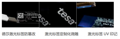 在安全防偽性能方麵,德莎激光標簽產品使用內嵌式水印標示主機廠的標識或特殊圖形,該標識在標簽生產過程中一體成型,無法再在標簽成品上偽造且也無法被橡皮擦以及化學試劑去除;另外,我們還可以增加增加微雕設計,提高標簽的偽造性能。德莎激光標簽移除後,產品發生斷裂自毀,無法重複使用;在油漆表麵移除後在原標簽粘貼區域可觀察到熒光印記,確保一輛車隻有唯一的VIN碼追隨一生。