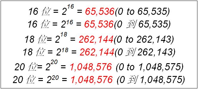 表1:DAC分辨率轉換為(wei) 代碼數的計算(16到20位)