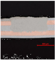 納秒脈衝光纖激光器的峰值功率較高,意味著可以較容易地以很小的平均功率進入銅等高反金屬中。使用納秒微焊接工藝作為焊接的一種替代方法,將元件直接貼合在銅印刷電路板(PCB)軌道上的研究顯示出了巨大的前景。目前已經成功將厚達150μm的銅引線貼合到>60μm的沉積軌道上,而與FR4基板之間沒有任何明顯的分層。這為熱敏元件或工作溫度可能超過傳統焊接極限的元件的貼合提供了替代方案。