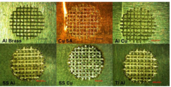 圖4:僅(jin) 用1秒左右的時間對直徑4mm、網格形狀的不同材料組合完成了微焊接。