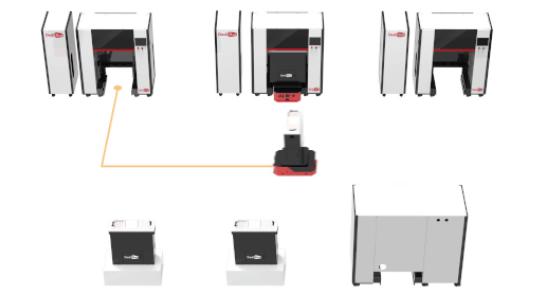 激光粉床自動化連續生產(chan) 係統組成單元靈活多變,可根據實際生產(chan) 需求對打印設備和清粉、混粉、表麵處理等後處理設備進行調整和配置,滿足絕大多數用戶的使用需求。