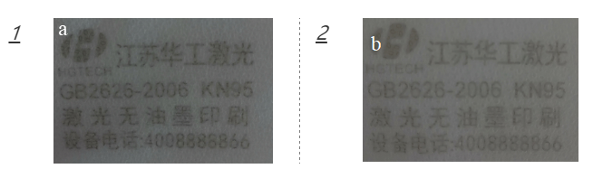 由於(yu) 熱加工光源產(chan) 生的熱量會(hui) 對口罩外層和中層表麵造成破壞,對口罩過濾性影響較大,所以華工激光選用“冷加工”紫外激光器對口罩表層進行標記。
