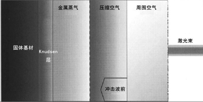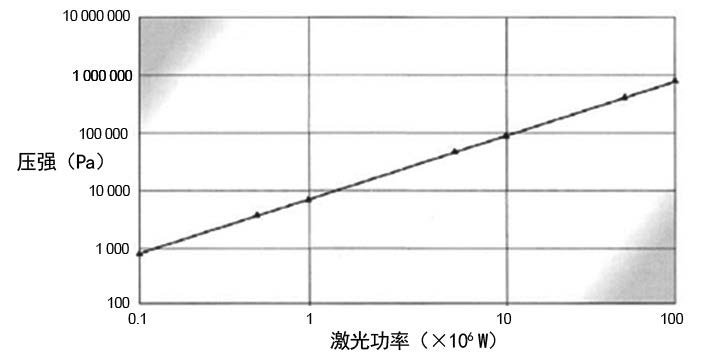 在激光輻射的表麵產生高壓脈衝的另外一種機製是蒸發壓力。金屬蒸氣從緊挨周圍氣體的金屬表麵膨脹,和周圍未壓縮的空氣之間存在一個壓縮區,引起在壓縮空氣和周圍未壓縮空氣的界麵上產生激波。材料的迅速蒸發產生很大的反衝壓力。例如在激光功率密度為 1×10 7 W/cm 2 時,會產生大約 2×10 7 Pa 的反衝壓力,在 1×10 8 W/cm 2 時,會產生大約1×10 8 Pa 的反衝壓力。