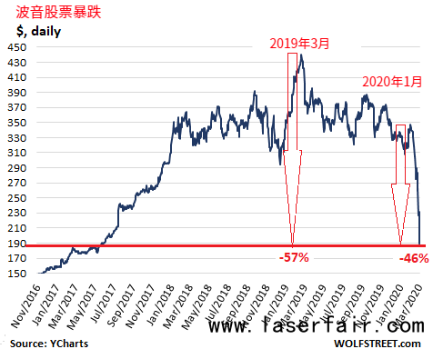 全球航空製造巨頭波音公司(Boeing)成為(wei) 美股下跌最為(wei) 嚴(yan) 重的公司之一,紐約股市收盤時,該公司股價(jia) 重挫18%,至189.08美元,創下1980年以來的最大跌幅。該公司股價(jia) 處於(yu) 2017年6月以來的最低水平。