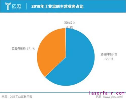 根據2018年財報,工業(ye) 富聯實現營業(ye) 總收入4,153.78億(yi) 元,同比增長17.16%,歸母公司淨利潤169.02億(yi) 元,同比增長6.52%。其中,通信網絡設備銷售收入為(wei) 2,591.54億(yi) 元,同比增長20.82%,占公司主營業(ye) 務收入比例從(cong) 2017年的60.75%上升至62.76%;雲(yun) 服務設備銷售收入為(wei) 1,532.24億(yi) 元,增長27.27%,占公司主營業(ye) 務收入比例從(cong) 2017年的34.10% 上升至37.11%。
