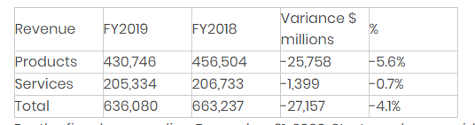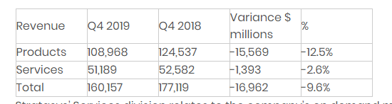 Stratasys的服務部門與(yu) 公司的按需製造和谘詢服務有關(guan) 。對於(yu) 2019年全年,服務部門報告的收入為(wei) 2.053億(yi) 美元,而2018年為(wei) 2.067億(yi) 美元。在2019年第四季度,服務產(chan) 生了5120萬(wan) 美元的收入,比2018年第四季度的5260萬(wan) 美元減少了2.6%。