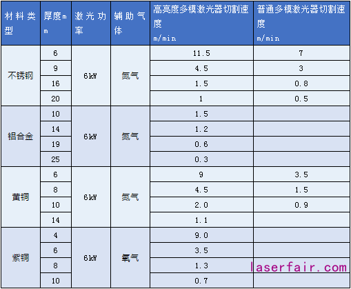 以厚板高反材料的切割為(wei) 例,大科6kW高亮度多模激光器切割速度參數如下表所示: