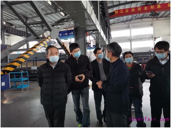 公司總經理吳讓大先生陪同李丹巡視員等領導一行深入車間,考察了解企業(ye) 員工到崗情況,詳細了解了企業(ye) 在疫情期間的防控措施和產(chan) 能恢複進度,同時參觀了國內(nei) 首台套20KW高功率激光切割設備的現場演示。省市領導對於(yu) 奔騰激光能在此次重大疫情期間克服人員到崗難等諸多困難,嚴(yan) 格遵守浙江省防疫政策相關(guan) 要求安全防範,有序安排完善組織企業(ye) 的全麵複工複產(chan) 給予高度的評價(jia) 和肯定。