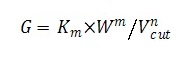 其中,Km:(用來說明材料性質的)係數;W:轉數;Vcut:切割速度;m, n:常數。