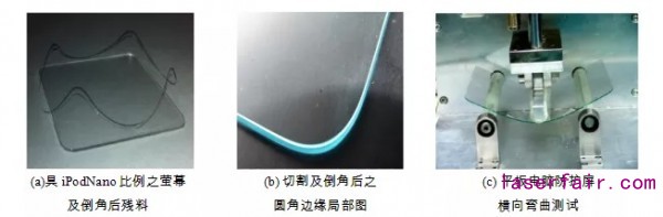 韓卓申科教授是鴻海科技集團的科學顧問,該集團為(wei) 生產(chan) 蘋果公司電子產(chan) 品及旗艦小配件的全球領導者。利用LCT法開發切割玻璃及藍寶石產(chan) 品的技術設備為(wei) 其主要合作方向。鴻海科技集團2007年即成立研究生產(chan) 車間,後發明以萬(wan) 用技術設備執行異形激光切割和雙麵倒角的製程[31-33],用於(yu) 與(yu) 蘋果公司iphoness、ipads和iMac等移動設備相似的防護屏(如圖2)。