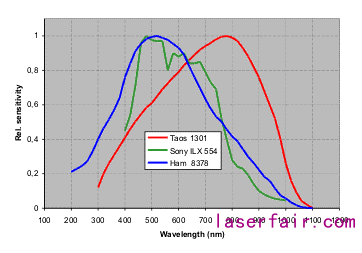 另外,一般CCD本身有對不同波長的敏感度曲線,如上圖: