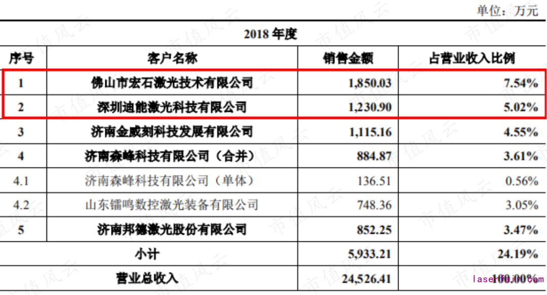 第一梯隊裏,宏石激光連續三年均是公司最大客戶,迪能激光在2016-2018年也是公司前三大客戶。