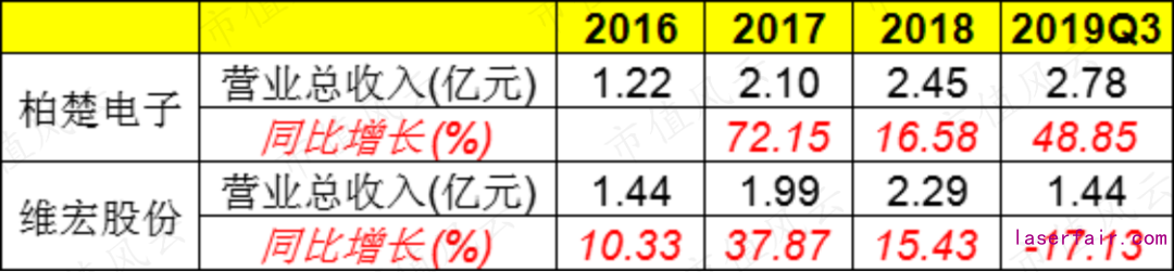 2019年前三季度,維宏股份收入同比下滑17.13%,而柏楚電子則恢複高增速,同比增長48.85%至2.78億(yi) 。