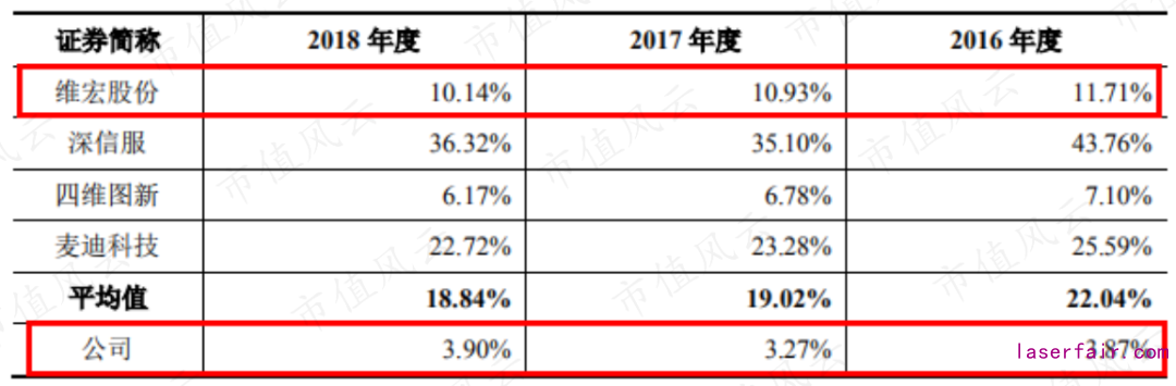 再來看維宏股份,在2018年同比增長15.43%,雖然承接了從(cong) 柏楚電子轉過來的邦德激光的訂單,但增速仍下滑22.44pct。