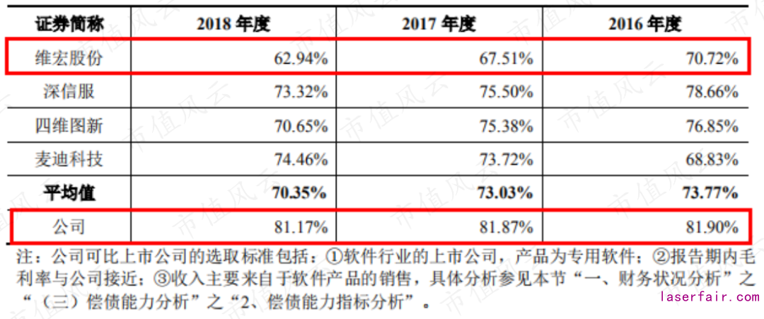2016年至2018年,公司綜合毛利率分別為(wei) 81.9%、81.87%和81.17%,比較穩定。
