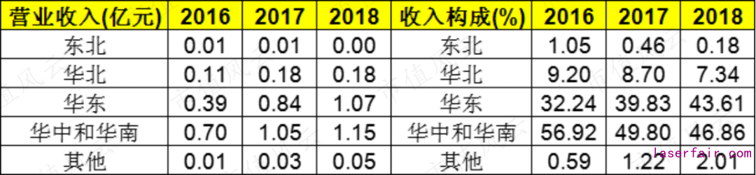 公司銷售主要麵向華中、華南和華東(dong) ,三個(ge) 區域收入占比接近90%。