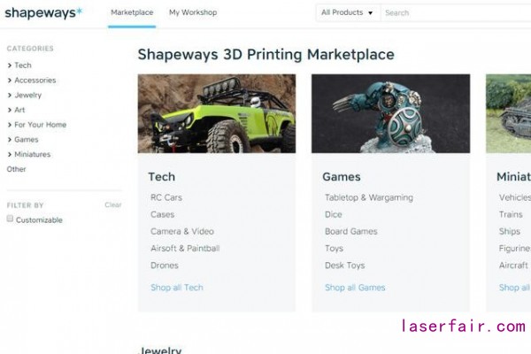 美國Shapeways網站是一個(ge) 可以開設3D打印機商店的地方。這些人是3D打印的高手。如果您已經準備好了設計或模型,您可以在Shapeways網站上讓客戶購買(mai) 。因為(wei) 它是按需打印的,在客戶訂購之前什麽(me) 都不會(hui) 做。