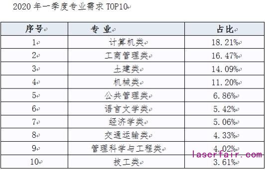 在人才專(zhuan) 業(ye) 需求方麵,計算機類、工商管理類,土建類、機械類、公共管理類專(zhuan) 業(ye) 排名前五,計算機類專(zhuan) 業(ye) 排TOP榜首,人才需求量較大。