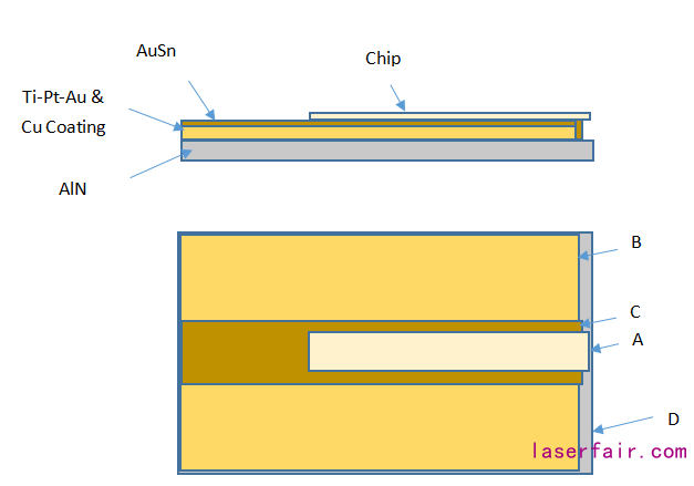 貼片工藝是HPLD製造中最關(guan) 鍵的封裝步驟。 在此過程中,采用金-錫共晶貼片工藝將單管或Bar條芯片連接到散熱基板。 芯片和散熱基板之間的接合通常是使用共晶貼片技術的金錫(AuSn)焊料。 HPLD芯片可以是單管激光芯片,也可以是多管的bar條激光芯片。 貼片工藝對於(yu) HPLD產(chan) 品的光學效率和現場可靠性至關(guan) 重要。 下麵重點介紹此關(guan) 鍵過程的一些挑戰: