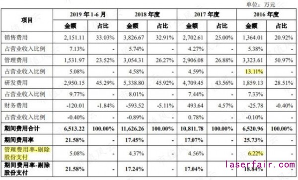 激光調阻機主要用於(yu) 超低阻合金電阻修阻。過去幾年處於(yu) 高增長階段,2016-2018年年化複合增長率為(wei) 230%,2018年收入1.54億(yi) 元,2019年上半年銷售額突破1億(yi) 元。