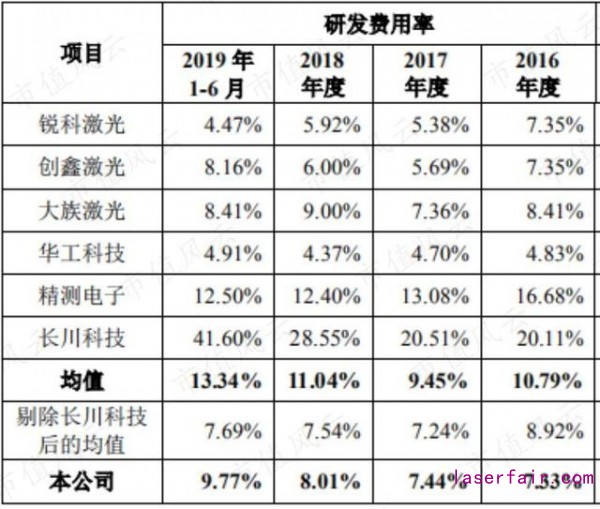 因為(wei) 連續光纖激光器產(chan) 品處於(yu) 市場推廣期,定價(jia) 低於(yu) 行業(ye) 平均;且由於(yu) 產(chan) 量較低,單位固定成本支出較高、原材料自製比例較低導致材料成本較高。2017年、2018年、2019年1-6月,傑普特連續光纖激光器毛利率分別為(wei) 10%、-3%、6%。
