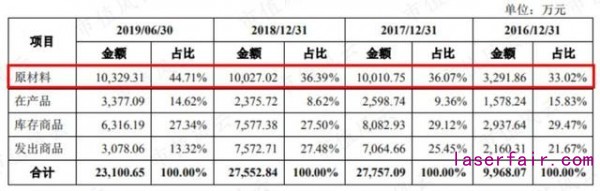 存貨主要是原材料,截止2019年6月30日,原材料1.03億(yi) 元,占比約45%;其次是庫存商品,餘(yu) 額0.63億(yi) 元,占比約27%。