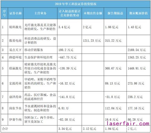 去年,華工科技出售了持有的A股上市公司銳科激光(300747)部分股權,獲得1.86億(yi) 元收益;出售了持有的已完成IPO輔導的傲基電商(原新三板企業(ye) )全部股權,獲得315.22萬(wan) 元收益。