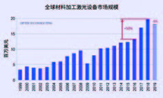 Optech Consulting 的報告稱,2019年全球材料加工激光設備市場規模達到179億(yi) 美元,較2018年下降 9%。