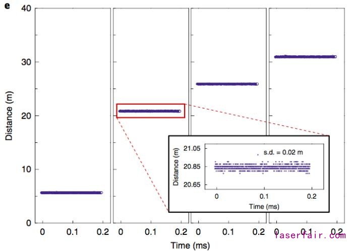 研究通過測量距離跡線的放大視圖,證明了這種光學距離測量的穩定性。