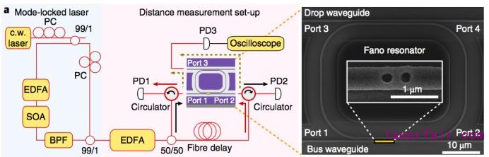 鎖模是光學裏一種用於(yu) 產(chan) 生極短時間激光脈衝(chong) 的技術,脈衝(chong) 的長度通常在皮秒甚至飛秒。5 MHz 的脈衝(chong) 重複頻率允許測量距離長達 60 m,並且可以使用帶通濾波器將脈衝(chong) 的中心頻率調整為(wei) Fano 器件的工作範圍。