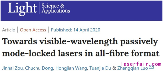 近日,廈門大學電子科學與(yu) 技術學院羅正錢教授課題組在可見光超快光纖激光研究中取得重要進展,相關(guan) 成果以“Towards visible-wavelength passively mode-locked lasers in all-fibre format”為(wei) 題發表在國際光電子學權威期刊《Light: Science & Applications》(Light: Science & Applications 9:61,2020)上。