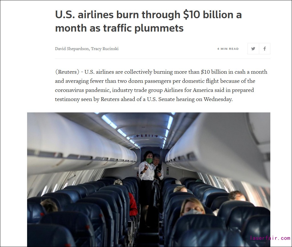 新冠疫情讓美國引以為(wei) 豪的商業(ye) 航空與(yu) 航空製造業(ye) 遭受了重創。美國航空協會(hui) 表示,目前美國航空公司每個(ge) 月要白白消耗超過100億(yi) 美元現金。
