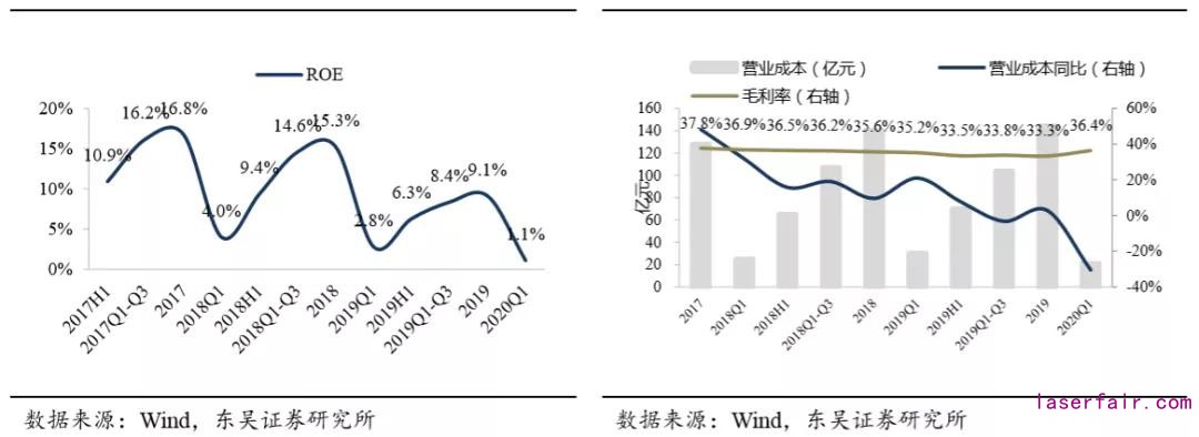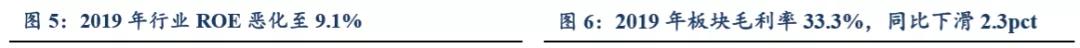 2019年板塊毛利率為(wei) 33.3%,同比-2.3pct,盈利能力下滑。2020Q1板塊毛利率36.4%。同比+1.2pct,Q1 行業(ye) 毛利率首度回升。