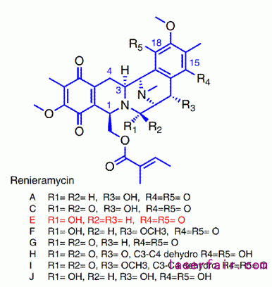 海洋海綿是微生物多樣性最豐(feng) 富的後生動物宿主之一。它們(men) 被認為(wei) 是最原始的生物,是研究微生物與(yu) 宿主相互作用的良好模型係統。海綿中的共生菌會(hui) 產(chan) 生許多具有不同生物活性的複雜代謝產(chan) 物,其中包括未被充分研究的海綿代謝產(chan) 物renieramycin生物堿。迄今為(wei) 止,已經發現了約30種renieramycin生物堿,它們(men) 發揮了廣泛的抗微生物和細胞毒性活性,這些活性在生態和治療上都具有重要意義(yi) 。從(cong) 生物合成的角度來看,對renieramycin生物堿的了解還很少。renieramycin生物堿核心結構類似於(yu) 四氫呋喃類的黃黴素,由於(yu) 其組分較為(wei) 廣泛,引發了作者的研究興(xing) 趣,想確定最原始的後生動物:海洋海綿中的renieramycin生物堿生產(chan) 的來源和分子基礎。