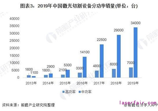 從(cong) 激光切割設備銷量來看,2019年中國銷售了約7000台高功率激光切割設備,同比增長16.7%;2019年中國銷售了約34000台中功率激光切割係統,同比增長。